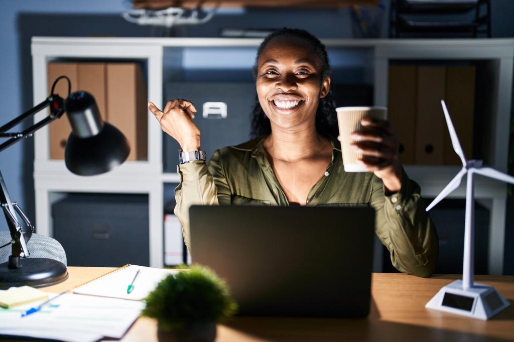 Vergleiche Verbräuche vor und nach der Umstellung, ideal mit Zwischenzählern oder App-Logs. Aus kWh werden CO₂‑Äquivalente, sodass du Erfolge schwarz auf weiß siehst und motiviert bleibst, weitere Optimierungen zu testen.